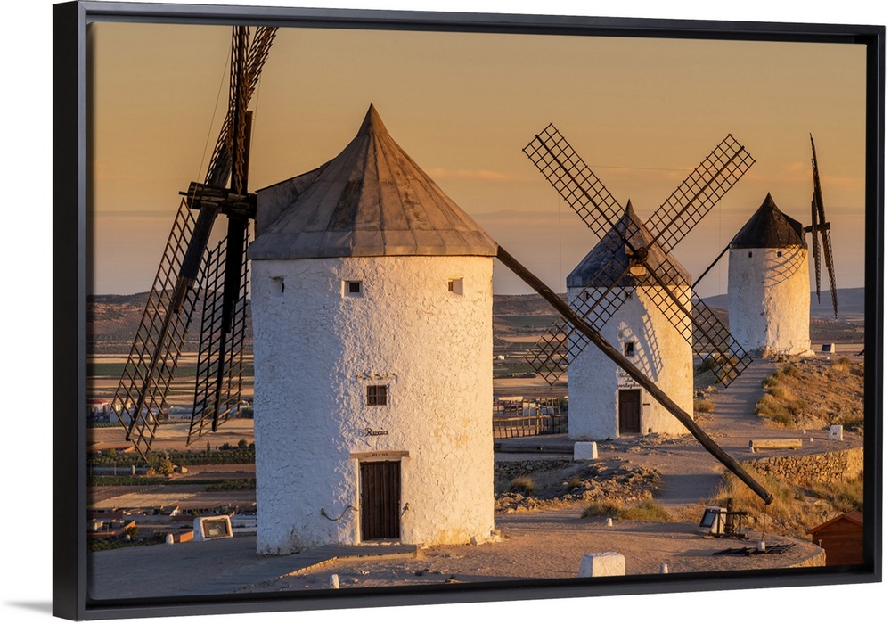 <p>Old Spanish windmills at sunrise, Consuegra, Castilla-La Mancha, Spain</p>