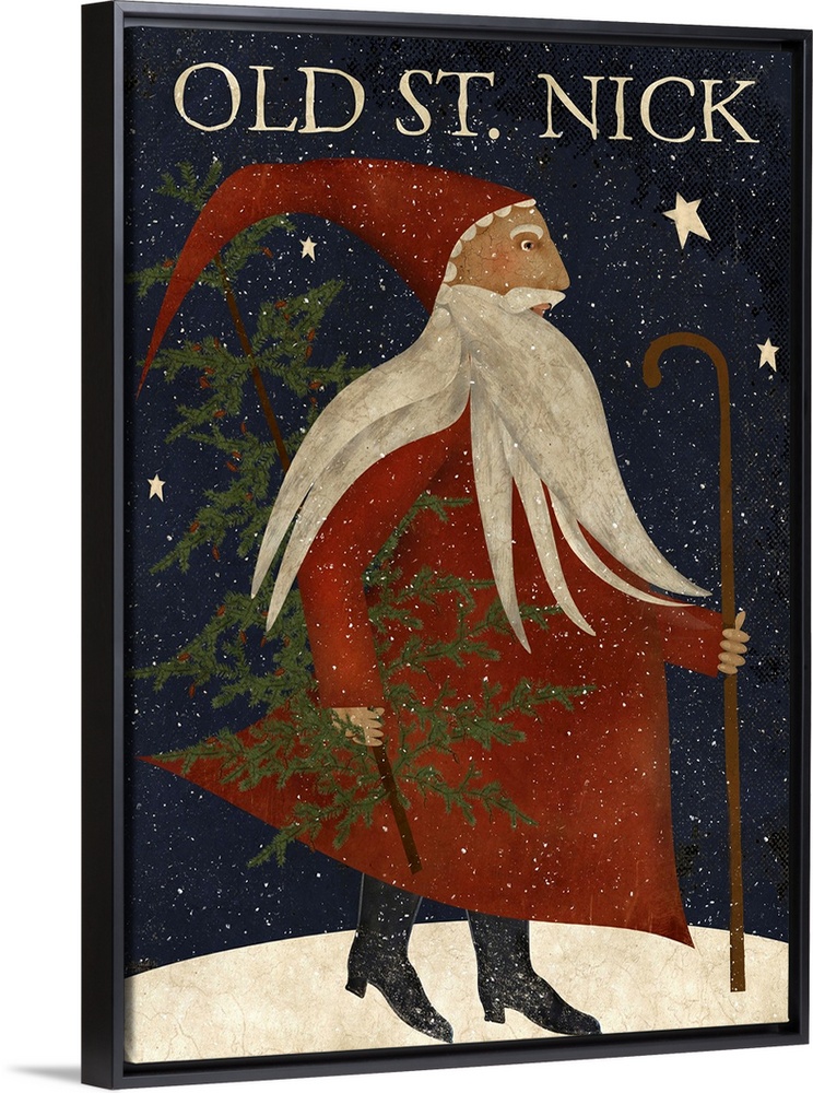 Beth Albert Art Blue Wall Art Decorate for the Holidays Holiday by Style Rustic Holiday Art Traditional Christmas Vintage Christmas Decorative Art Folk Art Graphic Art Holidays Christmas Santa Claus