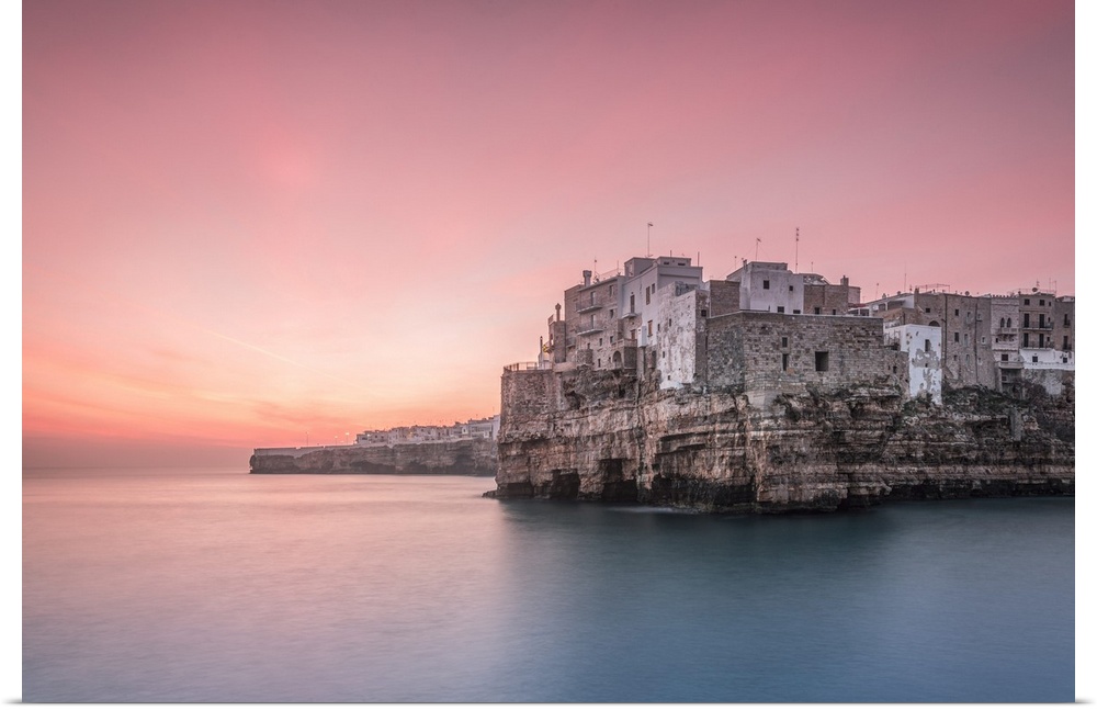 <p>Old town of Polignano a Mare built on rocky cliffs at sunrise, Bari province, Apulia region, Italy.</p>