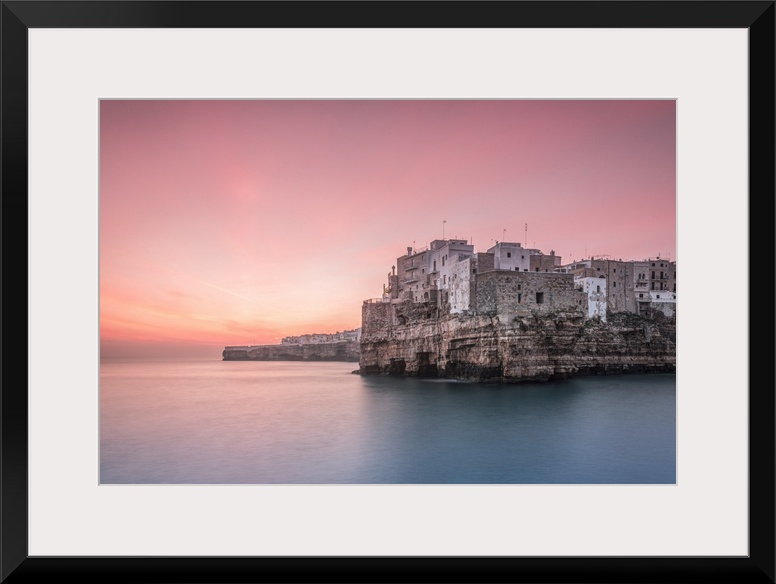 <p>Old town of Polignano a Mare built on rocky cliffs at sunrise, Bari province, Apulia region, Italy.</p>