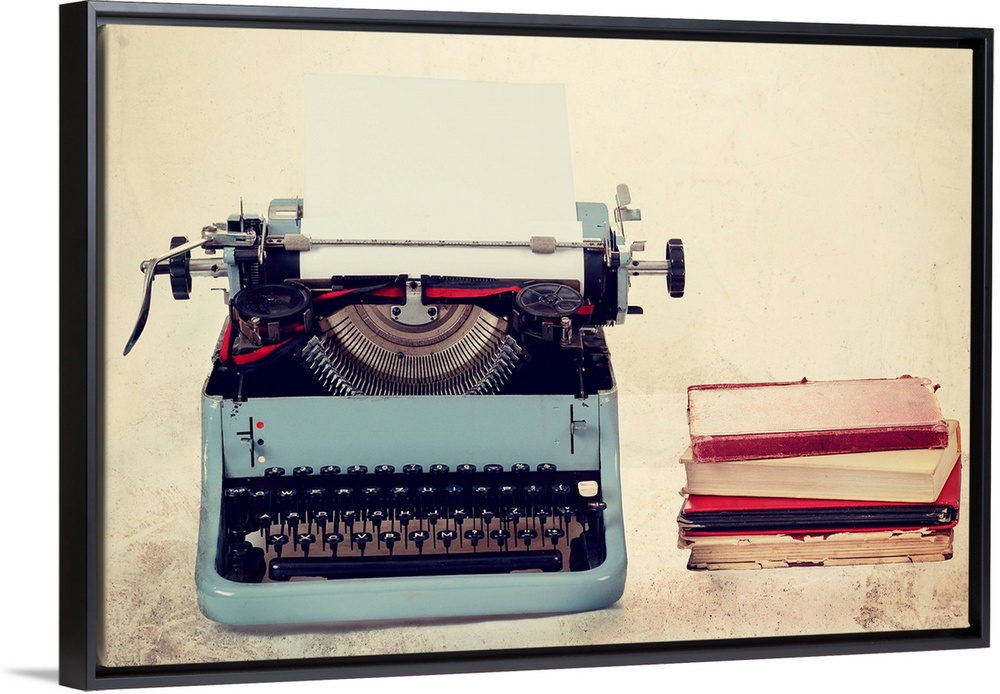 <p>Old Typewriter With Books Retro Colors On The Desk</p>