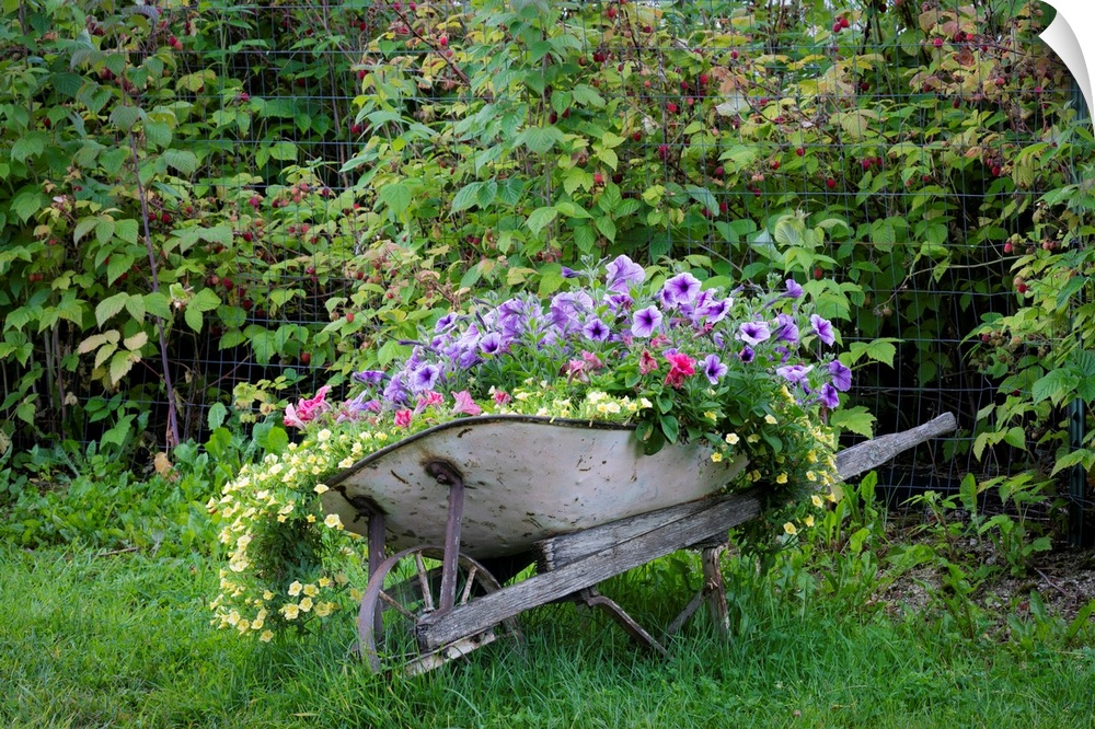 <p>USA, Alaska, Chena Hot Springs. Old wheelbarrow filled with flowers.</p>