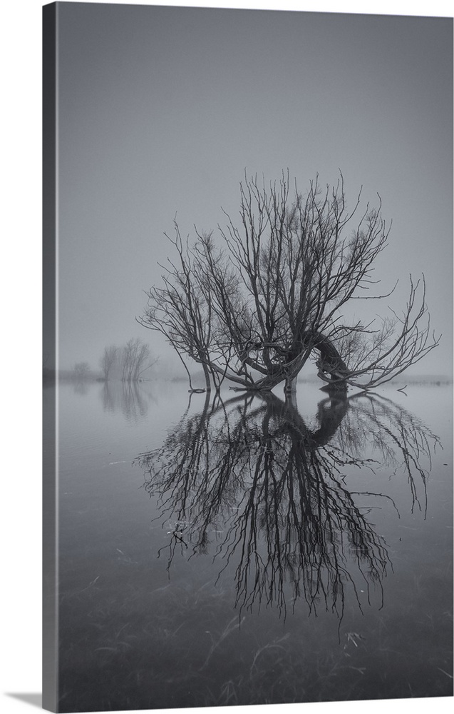 <p>Detail of old willow tree in flooded field near Wicken Fen, Cambridgeshire, England, UK.</p>