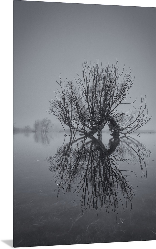 <p>Detail of old willow tree in flooded field near Wicken Fen, Cambridgeshire, England, UK.</p>