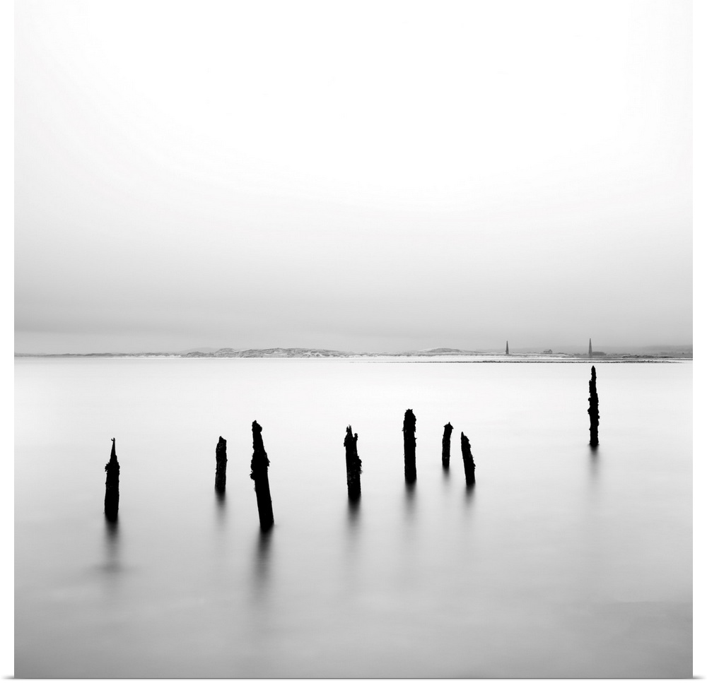 <p>Long exposure image, old wooden posts, Holy Island, Lindisfarne, Northumberland, England.</p>