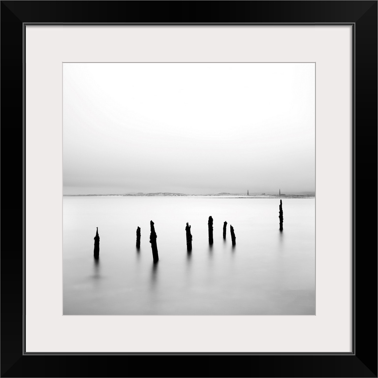 <p>Long exposure image, old wooden posts, Holy Island, Lindisfarne, Northumberland, England.</p>