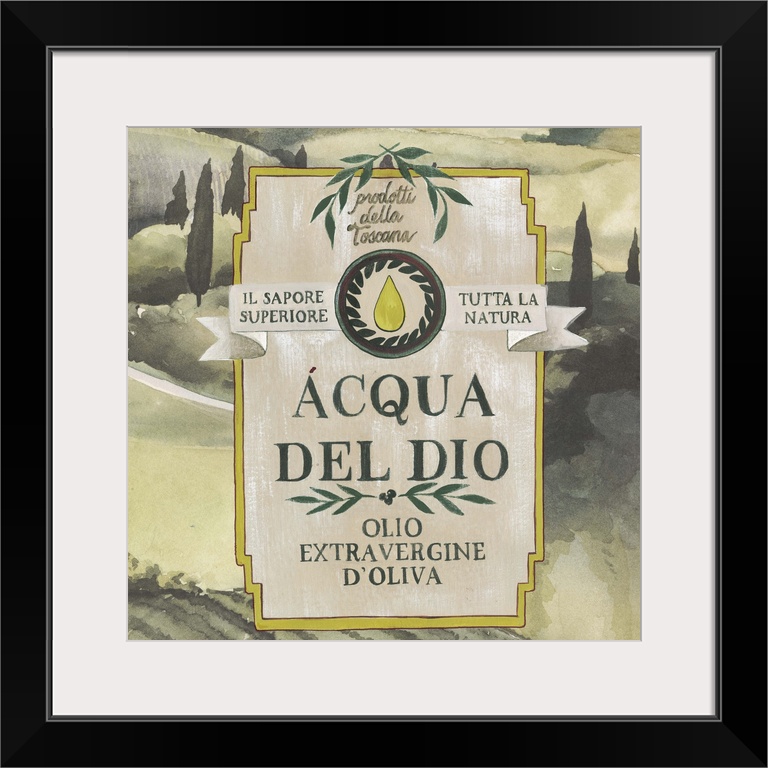 <p>Painting of a classic olive oil label with a Tuscan landscape.</p>