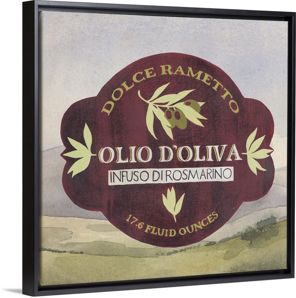<p>Painting of a classic olive oil label with a Tuscan landscape.</p>