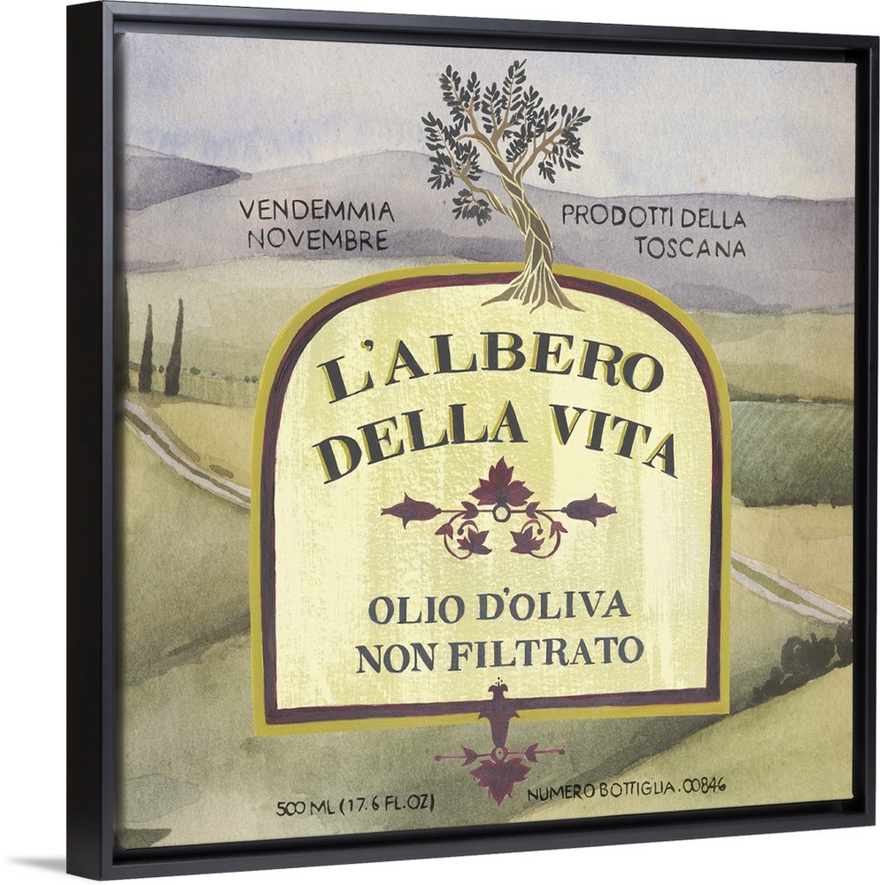 <p>Painting of a classic olive oil label with a Tuscan landscape.</p>