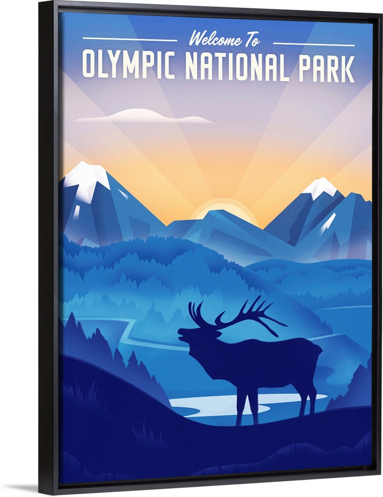 Art Blue Wall Art Decorative Art Graphic Art Landscapes Mountains Washington Olympic National Park Travel Posters Contemporary Travel Posters Martin Wickstrom Wildlife Moose and Elk