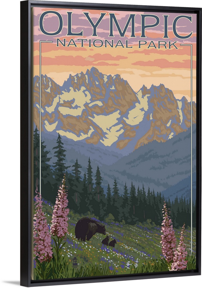 Art Landscapes Mountains Lantern Press Washington Olympic National Park Travel Posters Retro Travel Posters Bear