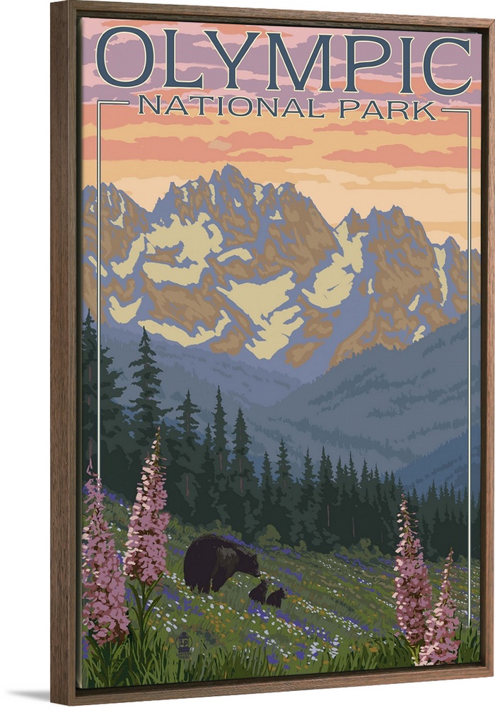 Art Landscapes Mountains Lantern Press Washington Olympic National Park Travel Posters Retro Travel Posters Bear