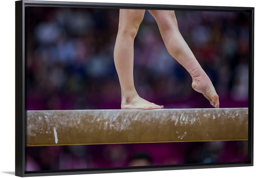 <p>Detail of gymnast preforming on the balance beam during the women's gymnastics team finals at the 2012 Olympic Summer Games, London, England.</p>