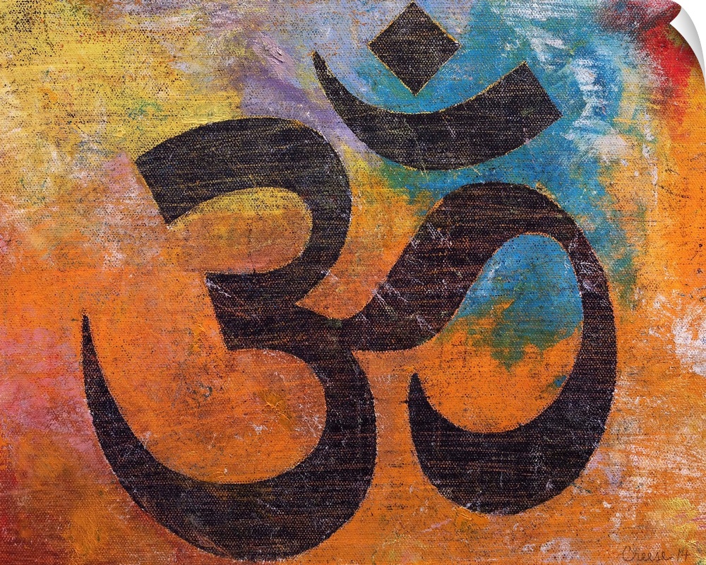 <p>A contemporary painting of an Om against a colorful background.</p>