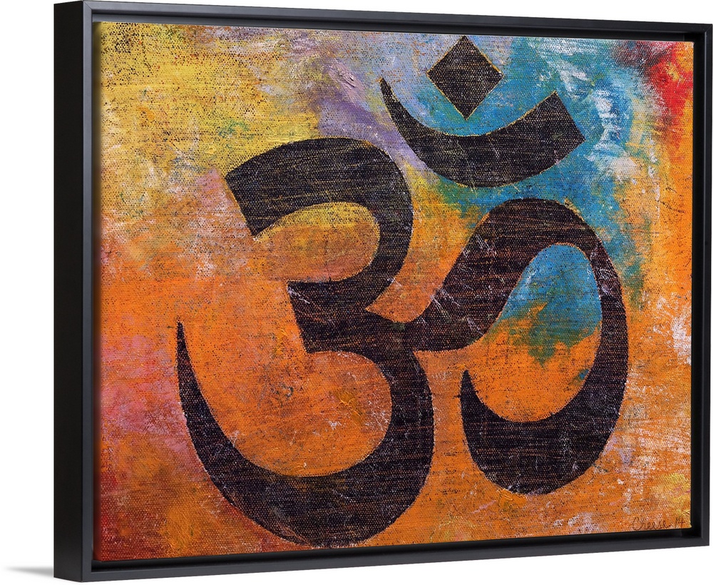 <p>A contemporary painting of an Om against a colorful background.</p>