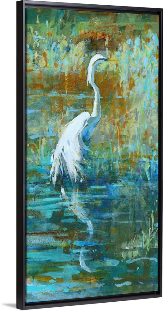 Art Coastal Living Room Art Coastal Living Room Kathleen Broaderick Contemporary Art Wildlife Green Wall Art Painting Wildlife Bird Heron and Egret