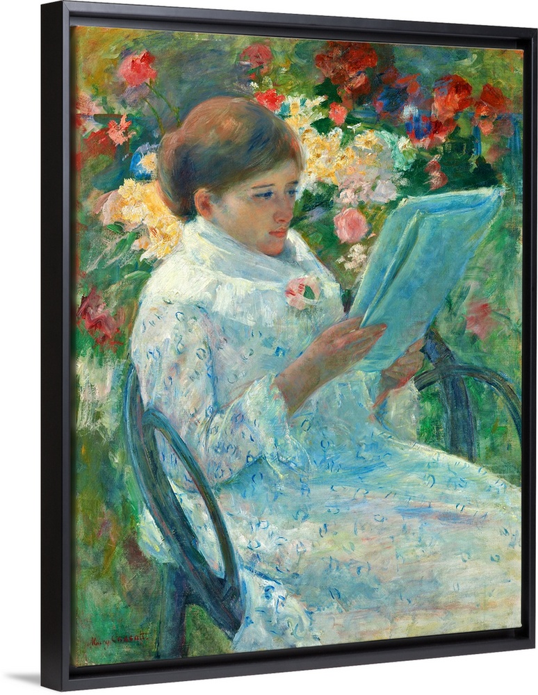 <p>During Mary Cassatt's early Impressionist period, she frequently focused on the activities of middle-class women in society - at the theater or taking tea, for example. At first glance, the arresting painting, On a Balcony, which was shown in the 1880 Impressionist exhibition, appears to depict a woman in a public setting. However, the blue rail of the balcony, visible near the top of the painting, defines the enclosed space of a private garden, while the woman's morning dress further indicates the intimacy of her location. Cassatt signaled the modernity of her subject through the woman's choice of reading material; she peruses a newspaper rather than a novel. Even at home Cassatt's subjects are connected to the contemporary world, not lost in a fictional fantasy.</p>