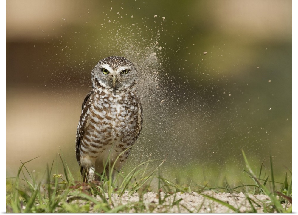 <p>A Burrowing Owl with dust in the air keeping a lookout.</p>
