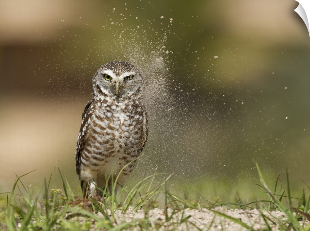 <p>A Burrowing Owl with dust in the air keeping a lookout.</p>