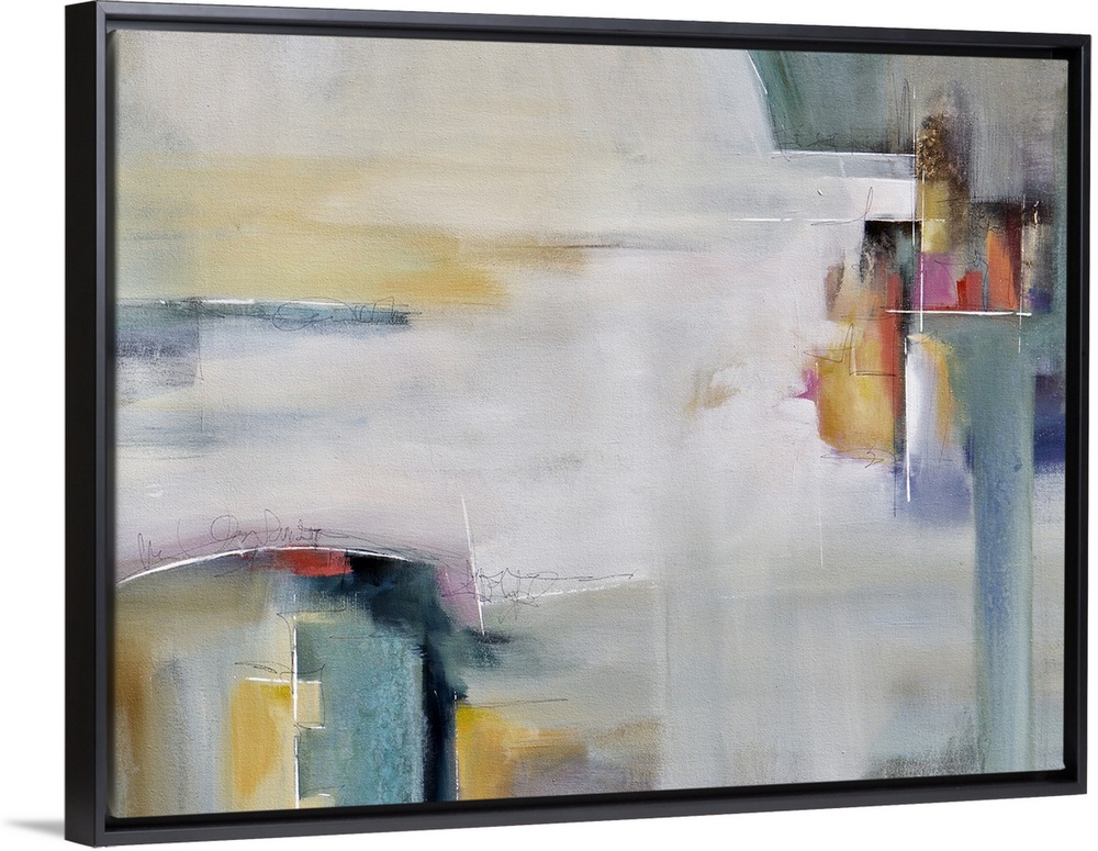 <p>Karen Hale's abstract paintings evoke a peaceful calm through her use of muted tones and unexpected hints of color.</p>