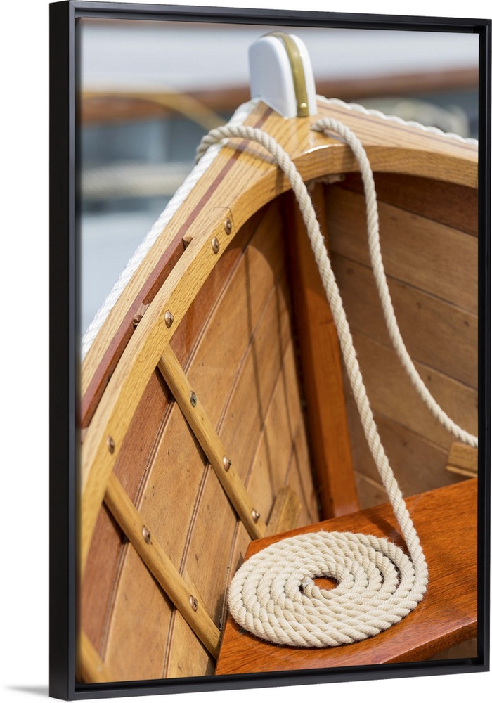 <p>coiled line in wooden boat, at the Bainbridge Island Wooden Boat Festival</p>