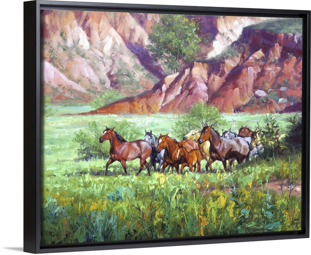 <p>Jack Sorenson’s art celebrates the Old West lifestyle and cowboy culture. He came of age on a dude ranch on the rim of Palo Duro Canyon. He worked as a stagecoach driver, horse trainer, and performance gunfighter before turning his attention to art. Sorenson has been a naturally gifted artist since he was a child and has been voted into the prestigious Cowboy Artists of America group. Sorenson’s paintings often feature horses and scenic landscapes of the Wild West.</p>