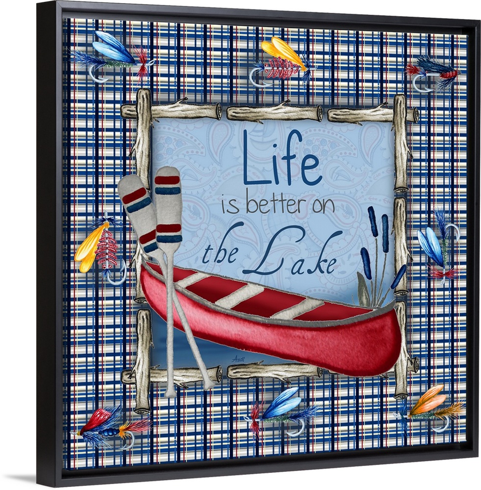 Art Blue Wall Art Decorative Art Lake House Art Andi Metz Painting Transportation Boat Rowboat Typography & Calligraphy