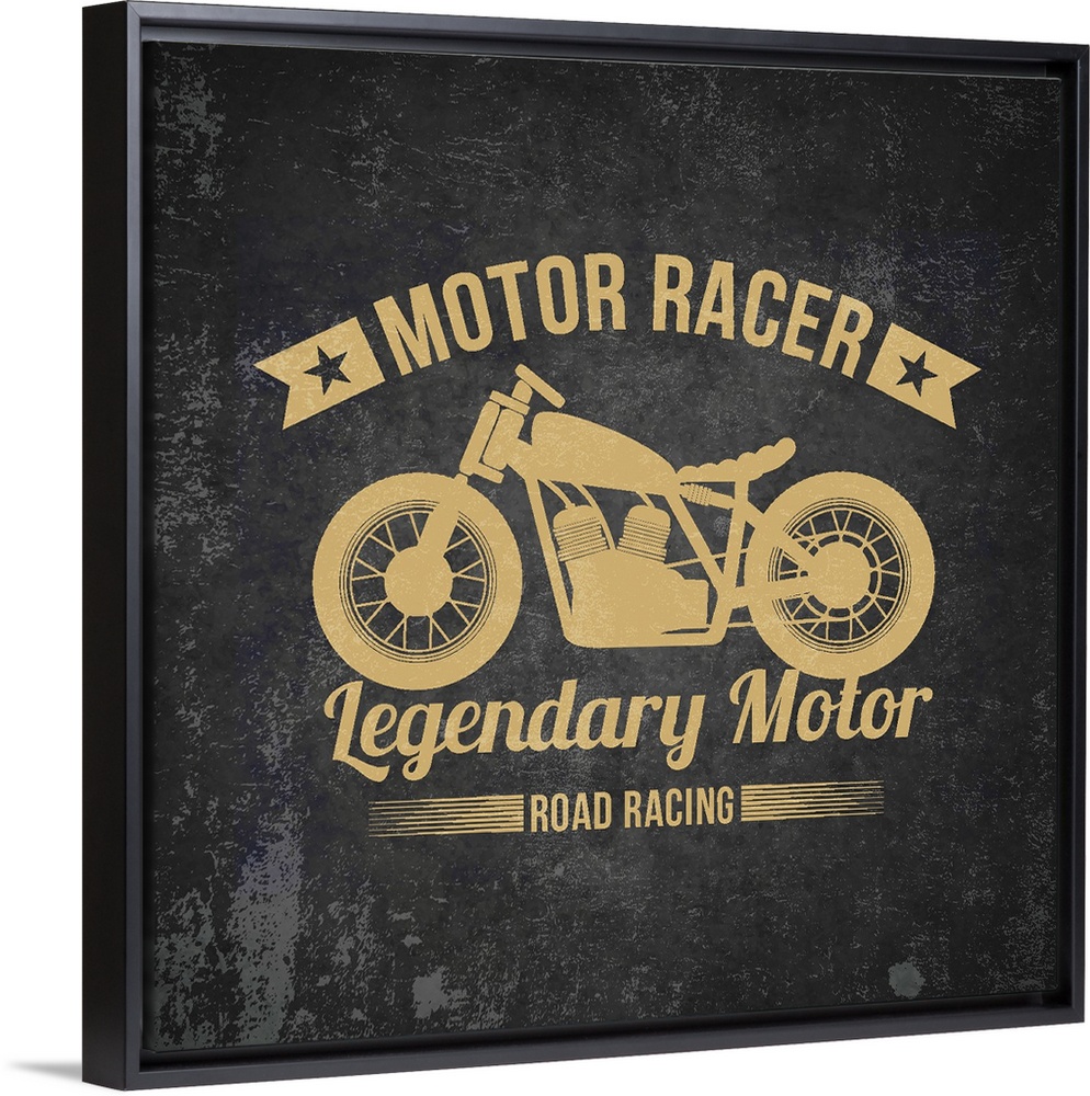 <p>Gold and black garage sign with a motorcycle design.</p>