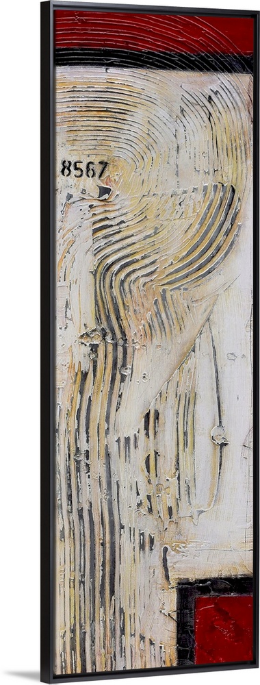 <p>Contemporary abstract artwork in red and white with narrow stripes.</p>