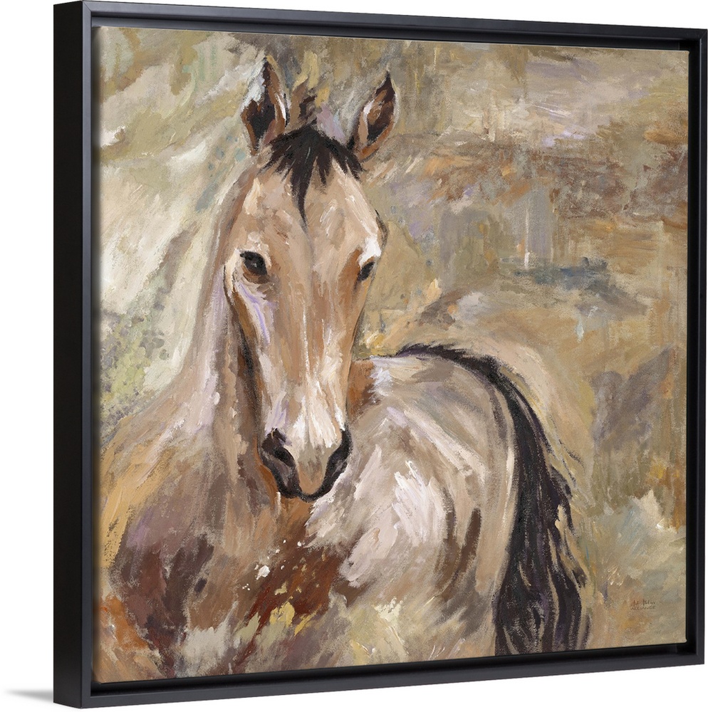 <p>Home decor artwork of a lone brown horse against a brown background.</p>