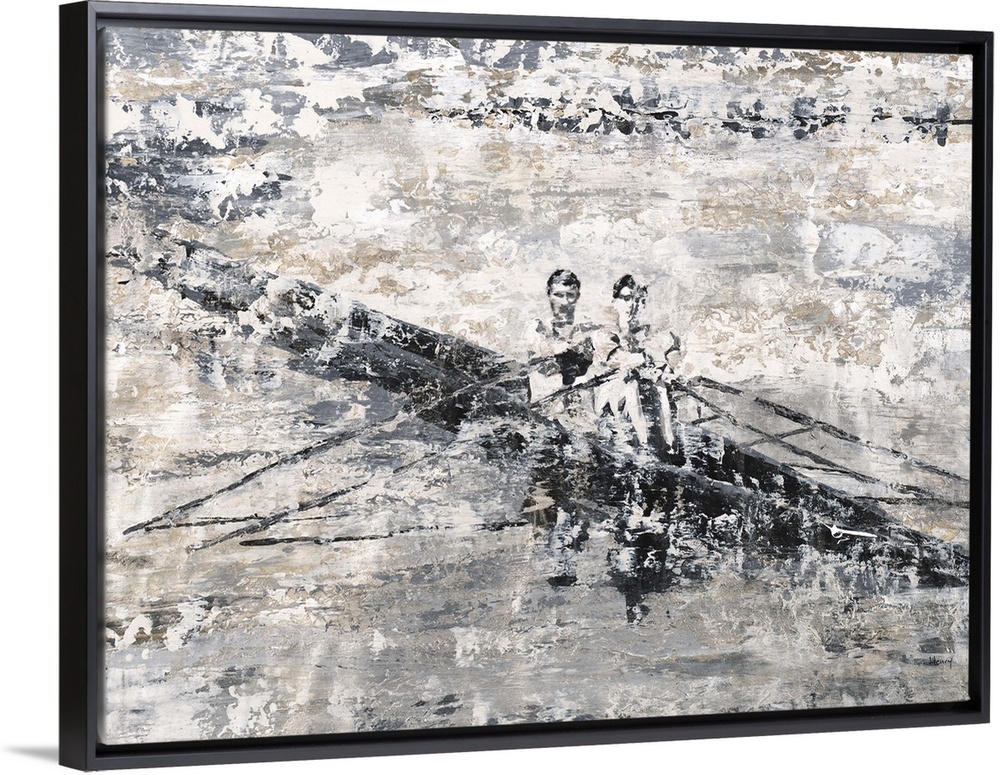<p>Contemporary abstract painting of two men rowing.</p>