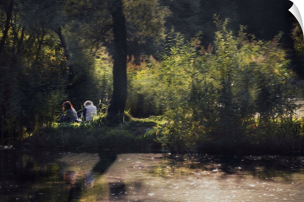 <p>A photograph of a couple sitting on a grassy clearing on a summer day.</p>