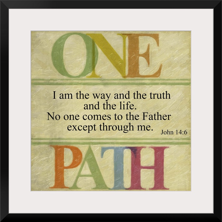 <p>Bible verse John 14:6 framed by letters in rainbow colors.</p>