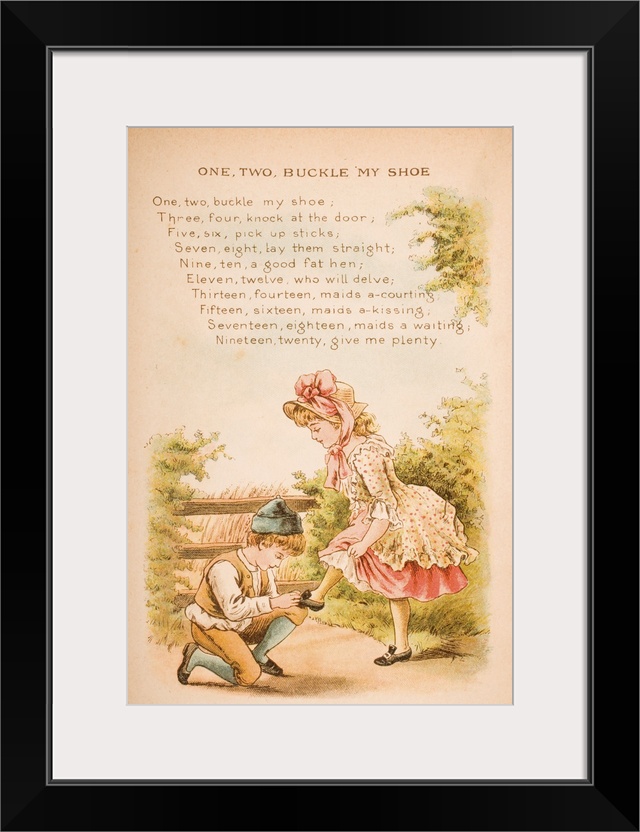 <p>Nursery Rhyme And Illustration Of One Two Buckle My Shoe From "Old Mother Goose's Rhymes And Tales." Illustrated By Constance Haslewood. Published By Frederick Warne and Co, London And New York, Circa 1890s. Chromolithography By Emrik and Binger Of Holland.</p>