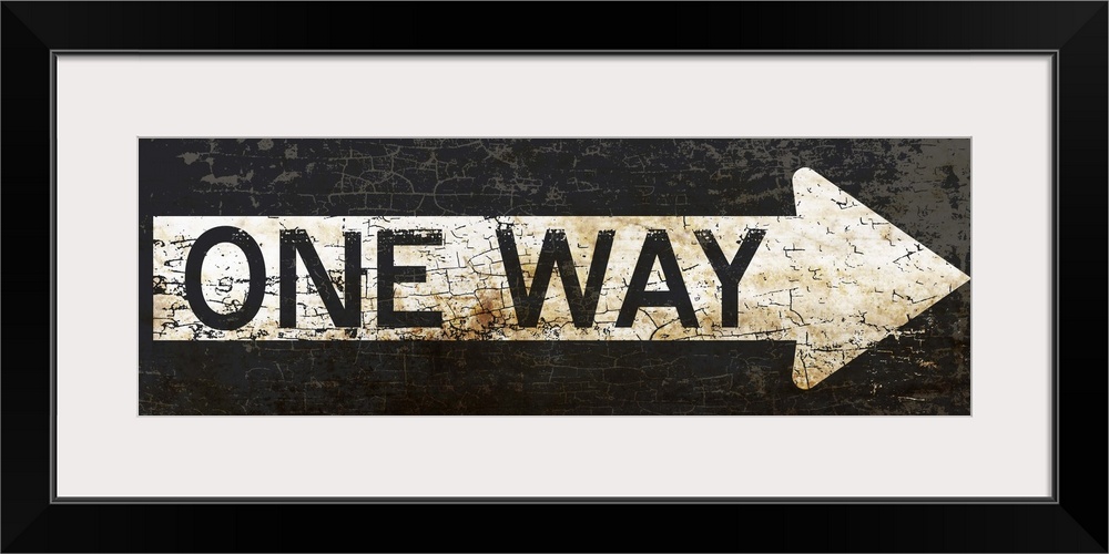 <p>A worn, distressed, cracked and rusty One Way street sign.</p>