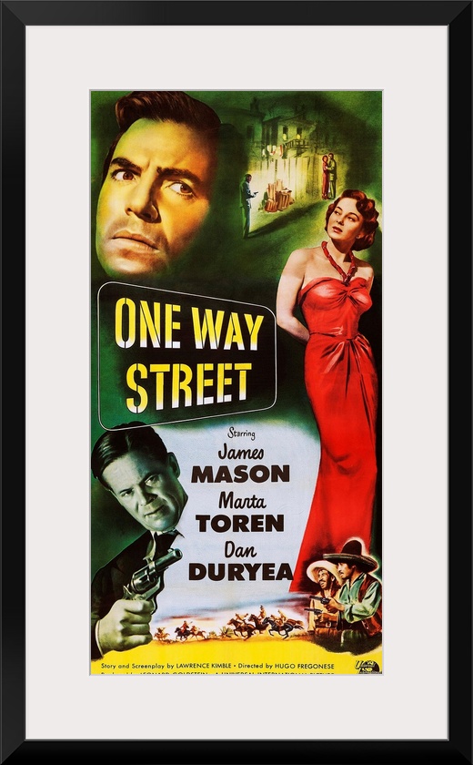 <p>ONE WAY STREET, US poster, from left: James Mason (top left), Marta Toren (right), Dan Duryea (bottom left), 1950</p>