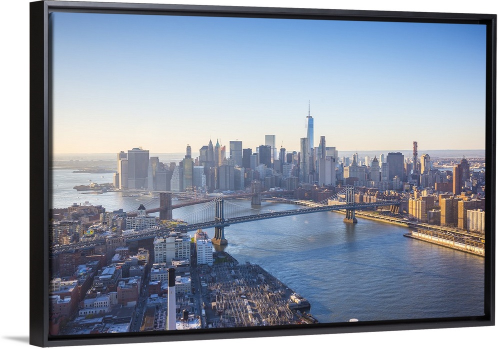 <p>One World Trade Center, Manhattan and Brooklyn Bridges, Manhattan, New York City, New York, USA.</p>