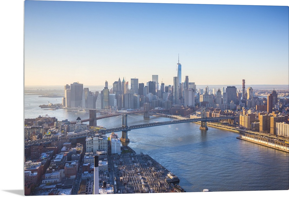 <p>One World Trade Center, Manhattan and Brooklyn Bridges, Manhattan, New York City, New York, USA.</p>