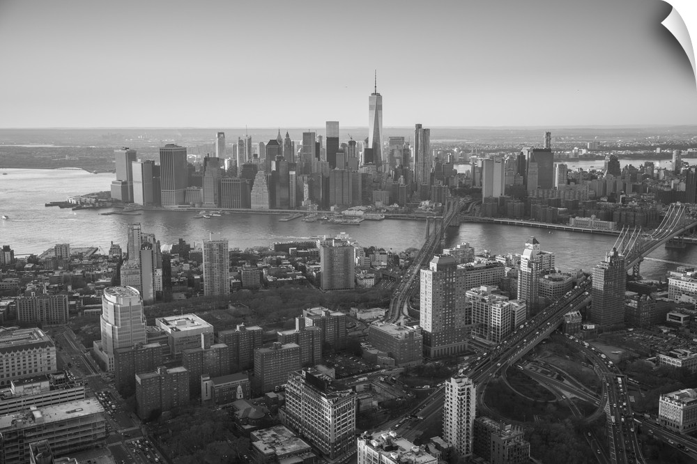 <p>One World Trade Center, Manhattan and Brooklyn Bridges, Manhattan, New York City, New York, USA.</p>