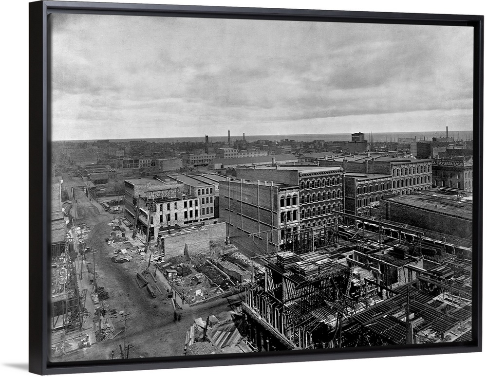 <p>One year after the Great Chicago Fire, some structures are being rebuilt. 1872.</p>