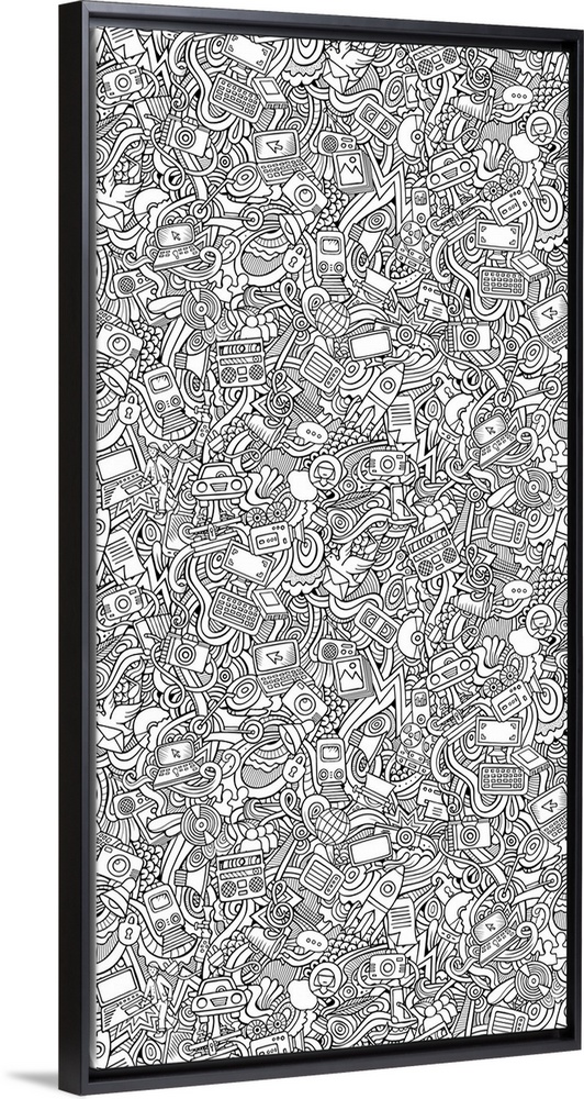 <p>A pattern of social media and internet-themed objects, including computers and keyboards.</p>