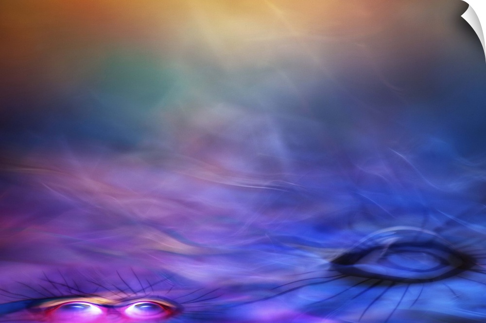<p>Colorful abstract digital artwork with a set of eyes at the bottom and white smoky textures.</p>