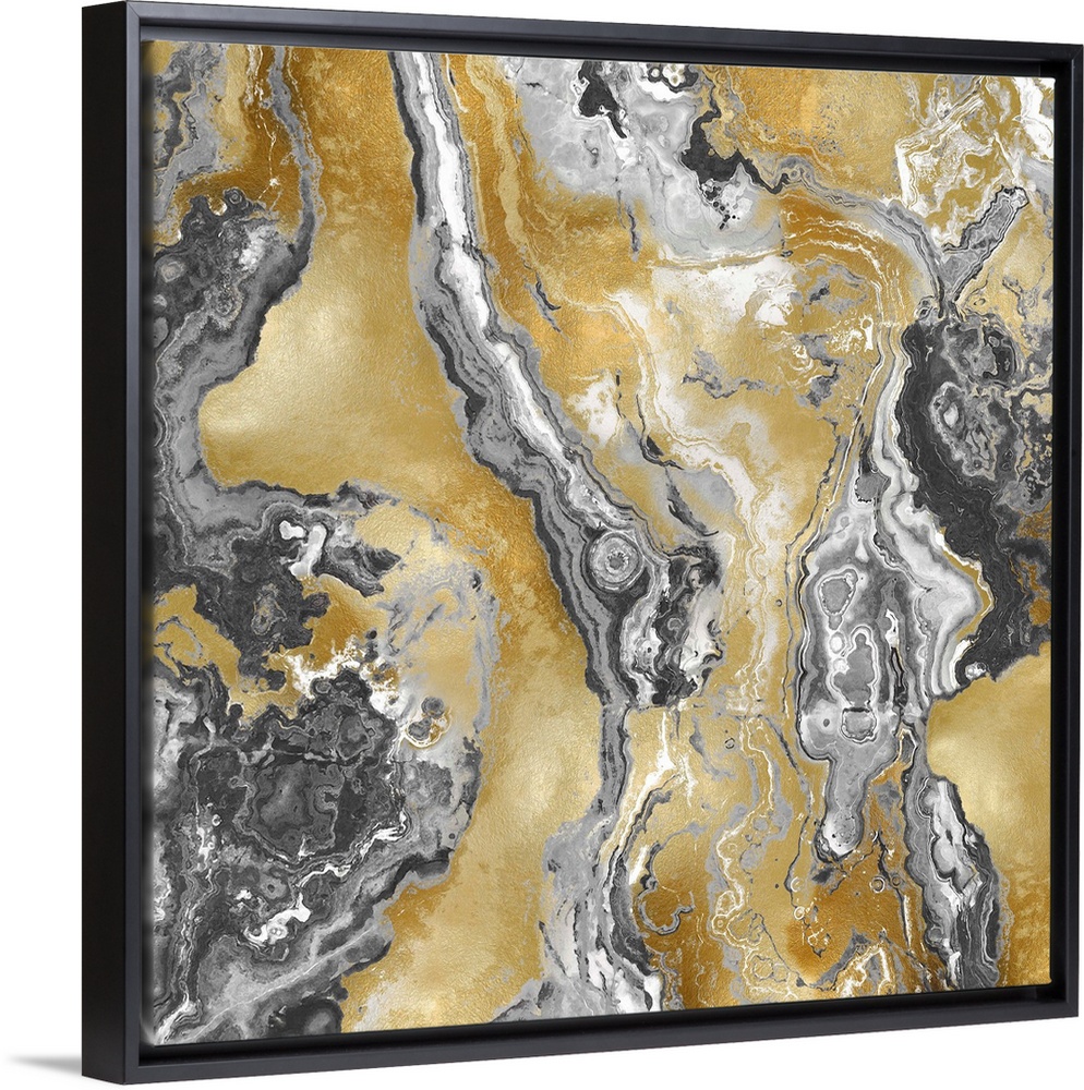 <p>Square abstract decor with a gold, gray, silver, and white onyx design.</p>