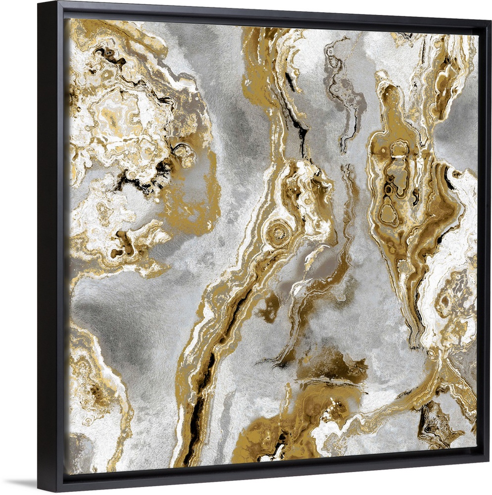 <p>Square abstract decor with a gold, silver, white, and black onyx design.</p>