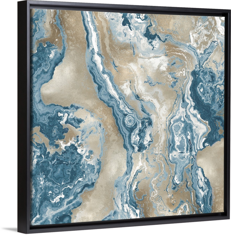 <p>Square abstract decor with a blue, white, and gold onyx design.</p>