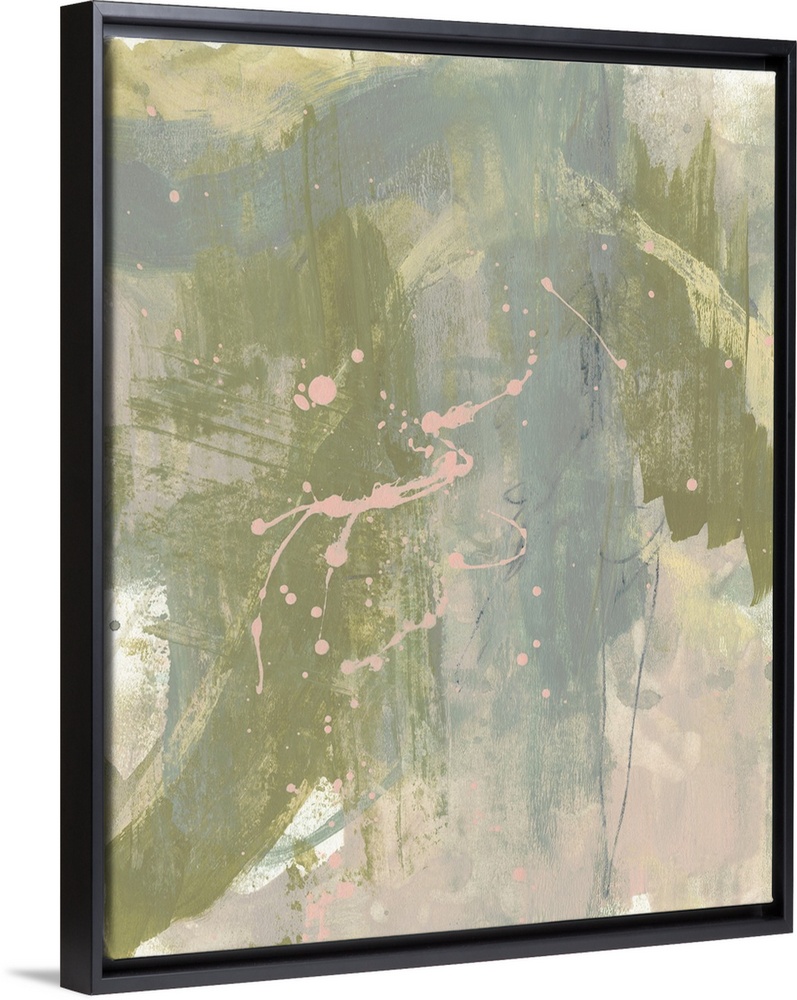 <p>Contemporary abstract in olive green, blush, and blue.</p>
