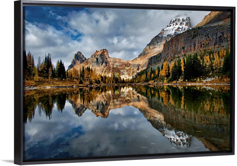 <p>An image made in late September in the Lake O'Hara area in British Columbia, Canada. This is in the Opabin Basin. Larches and firs are very abundant in this area, in Autumn the larches glow gold, but the firs stay dark green all year long. The mountains have a little bit of snow on them already.</p>