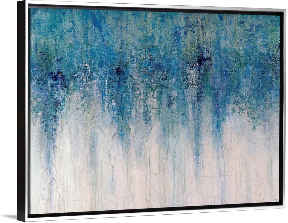 <p>Abstract artwork with different shades of blue toward the top of the print fading down to an almost white area at the bottom of the print.</p>