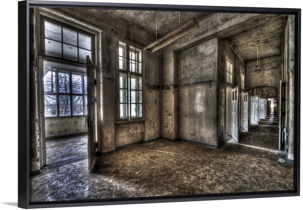 <p>Abandoned lunatic asylum north of Berlin, Germany. Empty room with corridor.</p>
