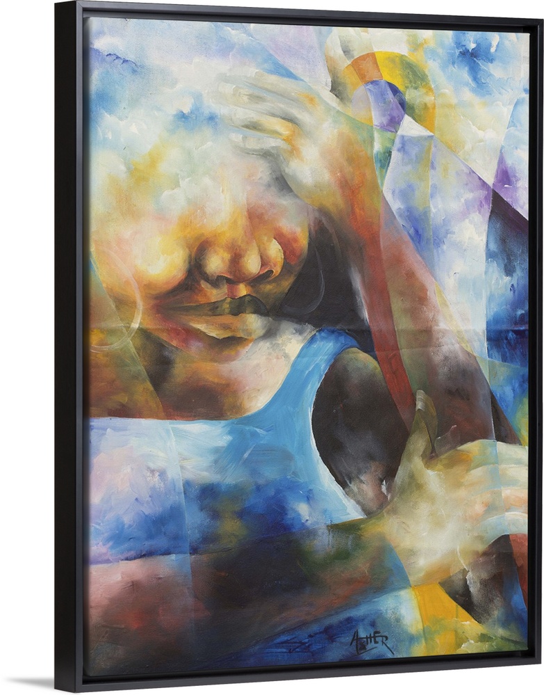 <p>Holding her hand to her forehead, her benevolent presence transcends the confines of the canvas. Minds filled with positive and cultural thinking shape society, believes Prince Asher. The Ghanaian artist combines oils and acrylics as he creates this inspiring composition.</p>